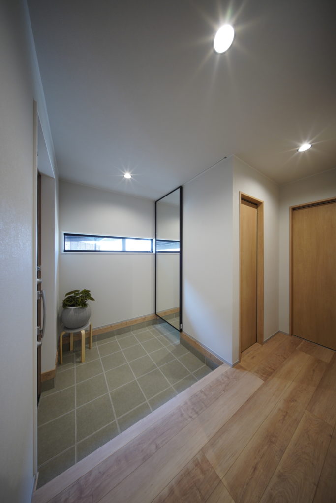 っています。姿見としても使え、玄関を広く明るく見えるように工夫しました。